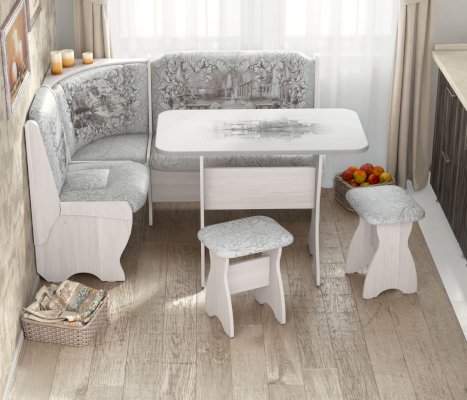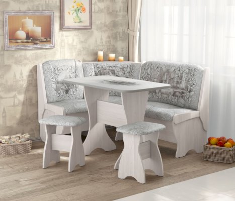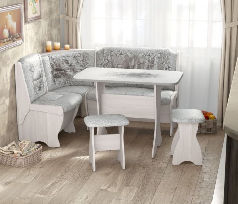 Кухонный угловой диван с двумя вместительными ящиками под сидением. Угол универсальный, собирается как в правом, так и в левом исполнении.