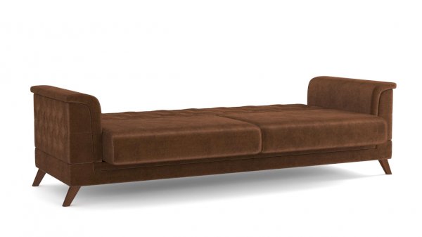 Уверенный, принципиально модерновый и классический одновременно диван. Спальное место 1930 х1210 вполне комфортно для отдыха. Каркас дивана выполнены из ЛДСП и бруса хвойных пород. Опора производства Турции, отлитая из первичного пластика, удерживает вес до 230 кг при распределенной нагрузке, что располагает к комфортному размещению на диване. Задняя часть дивана обита тканью в цвет модели, внутренние части модулей обиты технической тканью.