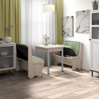 Можно самим собрать уголок из диванчиков нужного Вам размера - двух больших, двух малых или разноразмерных, как в классическом варианте, подобрать любой понравившийся кухонный стол, табуреты или стулья.