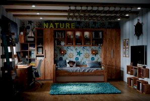 Организовать хранение в комнате подростка поможет вместительный навесной шкаф Nature 81. Навесной шкафчик шириной 2241 мм с двумя открытыми отделениями и тремя за стеклянными тонированными фасадами. Стеклянные полки выдерживают до 2 кг каждая. Шкаф декорирован составным карнизом в стилистике всей молодежной коллекции Nature. Уместно дополнит компоновку с навесным шкафчиком Nature 80 Кровать подростковая или Nature 84 Cтол письменный. К шкафу можно докупить модуль ADELE 87 Подсветка.